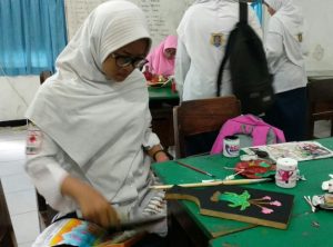 Sementara itu, siswa kelas 9 Mutiara Syaharani mengaku bangga dengan karyanya. Menurut dia, lukisan yang dibuatnya merupakan karya yang unik.