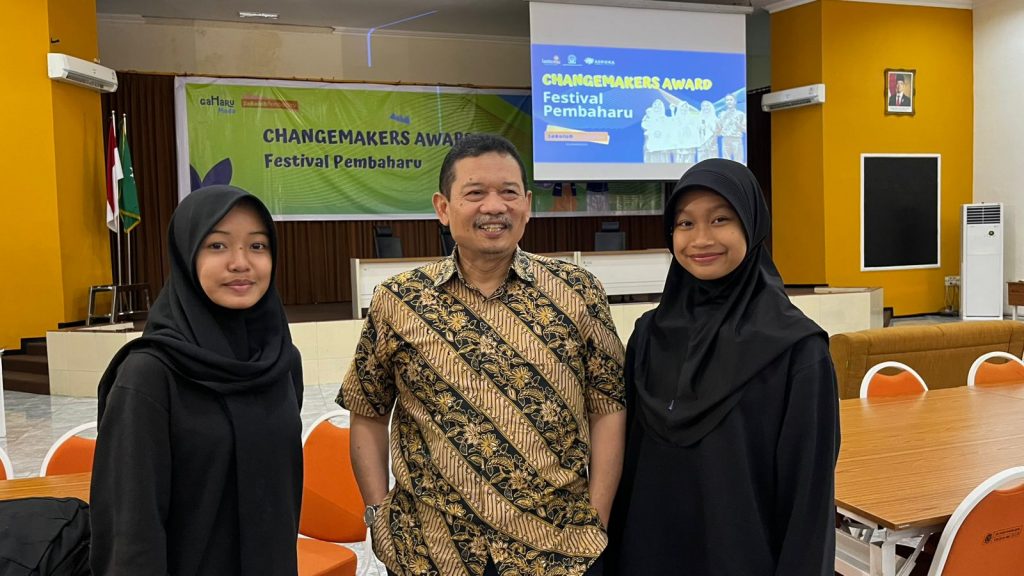 Vanessa dan Afiqa berfoto bersama Ketua Majelis Dikdasmen PNF PP Muhammadiyah yang juga menjabat Staf Menteri Pendidikan Dasar dan Menengah