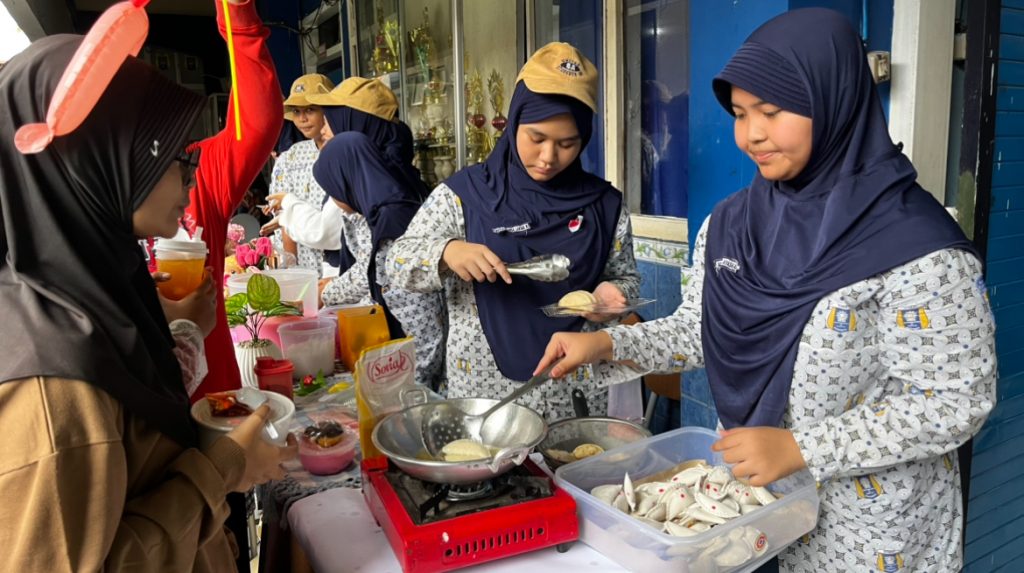 Salah satu daya tarik utama dalam acara ini adalah deretan stan kuliner hasil olahan siswa yang memadukan kreativitas rasa dengan strategi berjualan.