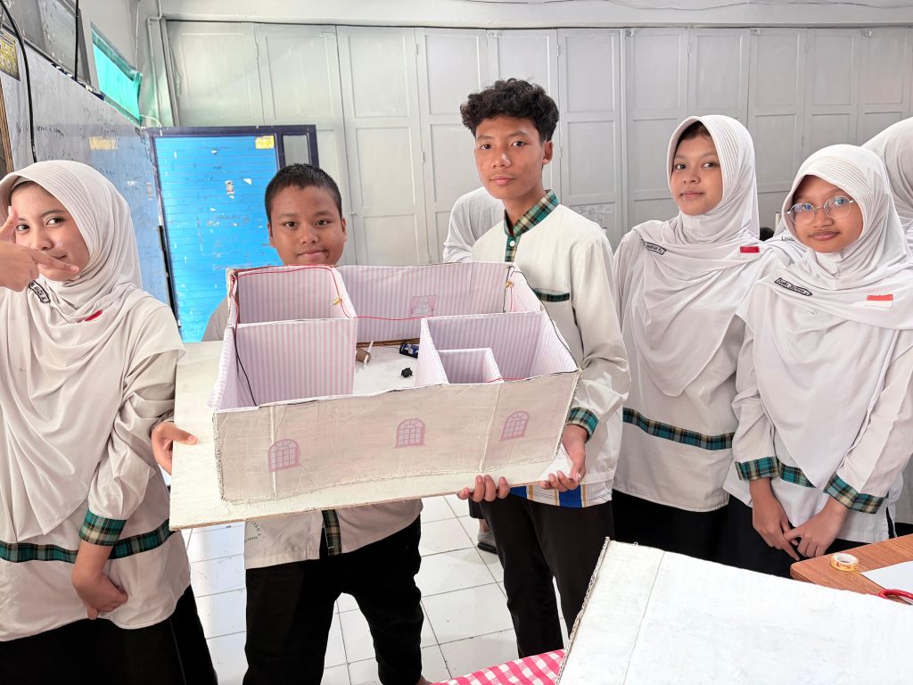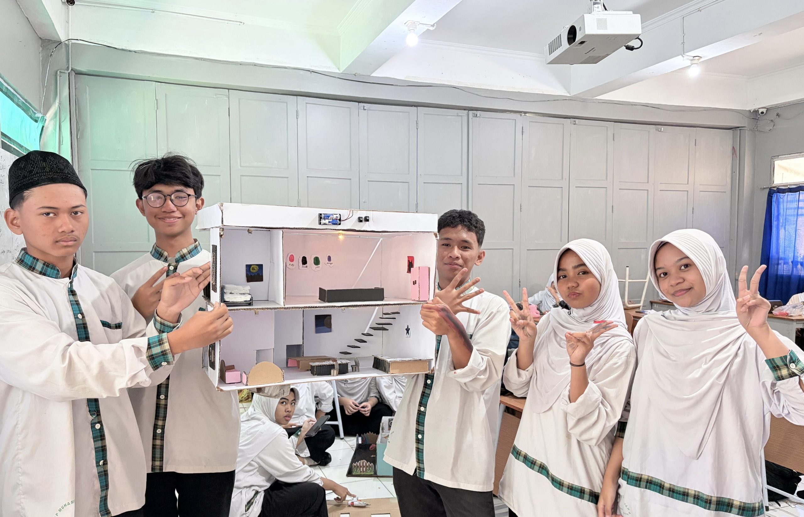 Di kelas 9A lantai 2, Jumat (6/2), sunyi pecah oleh pekik kegirangan yang sempat tertahan. Ketika lampu-lampu yang ada di maket rumah menyala. Sebanyak 25 siswa kelas 9A tengah berjibaku dengan usaha kecil yang mereka lakukan: sebuah maket rumah pintar bertajuk Smart House Engineering.