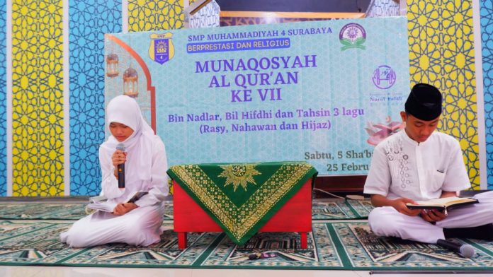 Nuansa serbaputih dikenakan oleh murid beserta wali murid SMP Muhammadiyah 4 Surabaya (Spempat). Mereka memenuhi undangan sekolah berbasis pesantren ini untuk melaksanakan munaqasyah. Di Masjid Syuhada, Kompleks Pendidikan Muhammadiyah Gadung, kegiatan itu dihelat. Dengan duduk bersila, mereka menyimak…